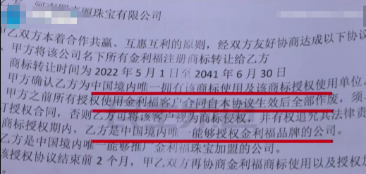 河南克罗丽珠宝有限公司作为金利福珠宝在国内的唯一授权单位,与深圳金利福总部签订了正规且具有法律效力的授权合同,合同里明确规定了授权的范围、期限以及双方的权利和义务。