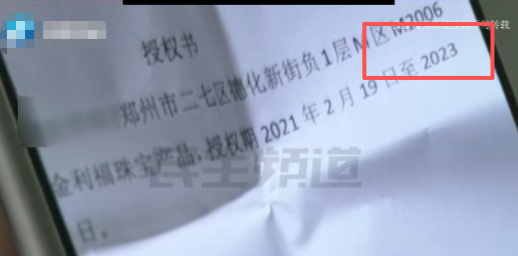 同名店铺在媒体和工商局介入之后,拿出了“金利福珠宝”商标的授权书。不过让人意想不到的是:该商标授权书早已于2023年2月18日到期。这一关键差异,使得两者的合法性一目了然。没有商标使用授权书或者相关证明已经过期,就意味着这家同名店铺在使用“金利福珠宝”商标时缺乏合法依据,其行为极有可能构成侵权。